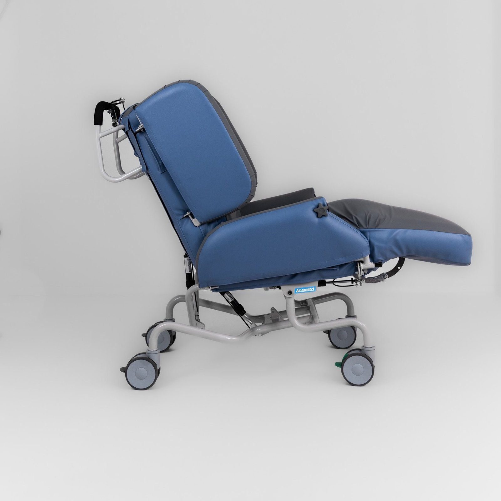 The Aspire Mobile Air Chair is a fully adjustable seating system designed for users with complex postural or pressure care needs. Ideal for use in hospitals, care homes, or domestic settings, this mobile chair combines tilt-in-space functionality, backrest recline, and elevating leg rests to optimise posture, pressure redistribution, and comfort.